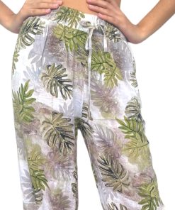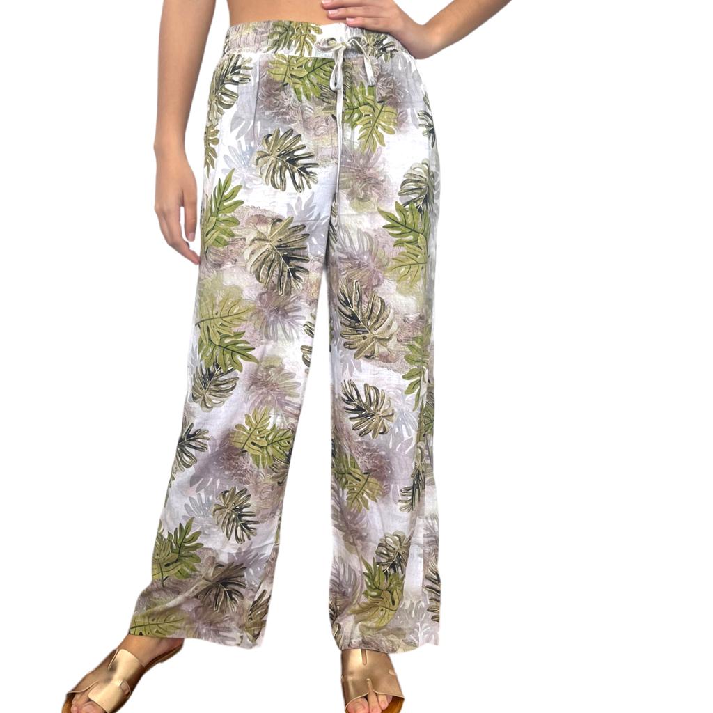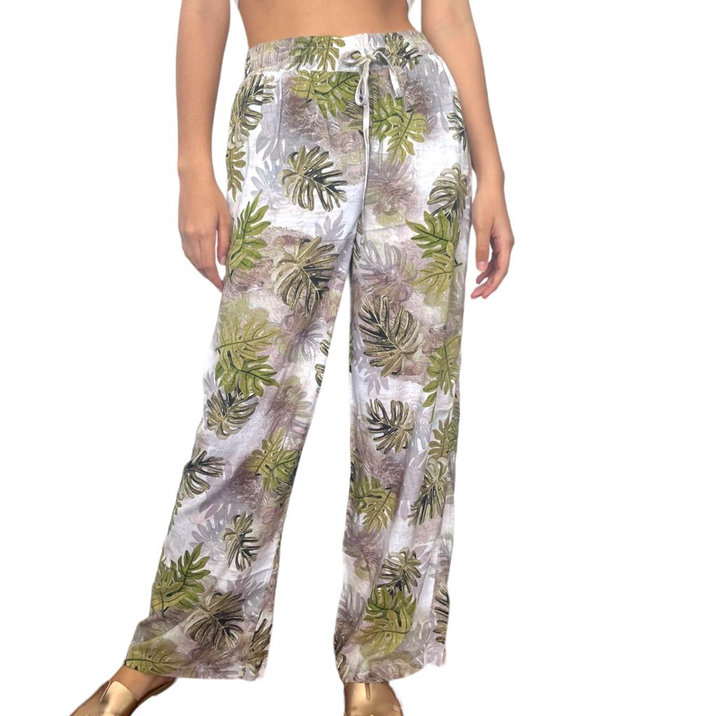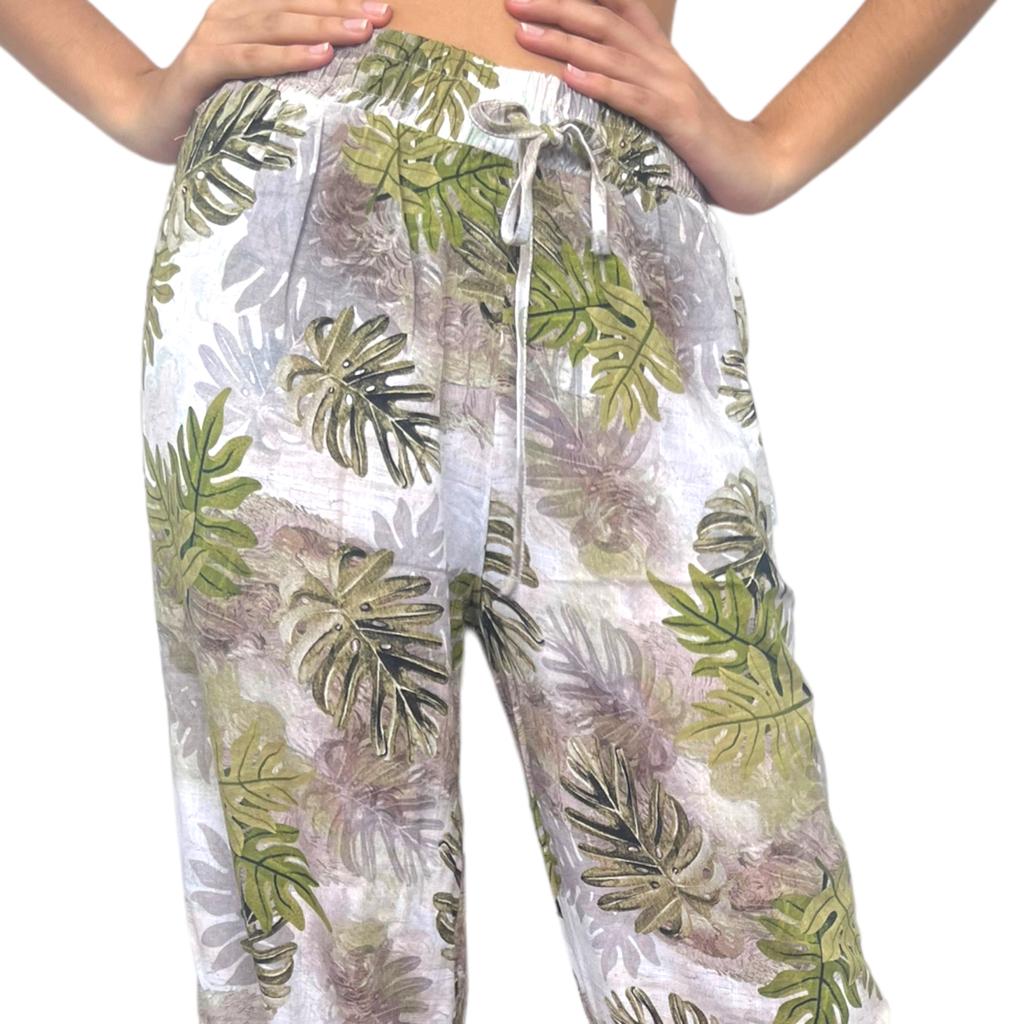 Pantalón en Tejido tipo lino, cintura elasticada.