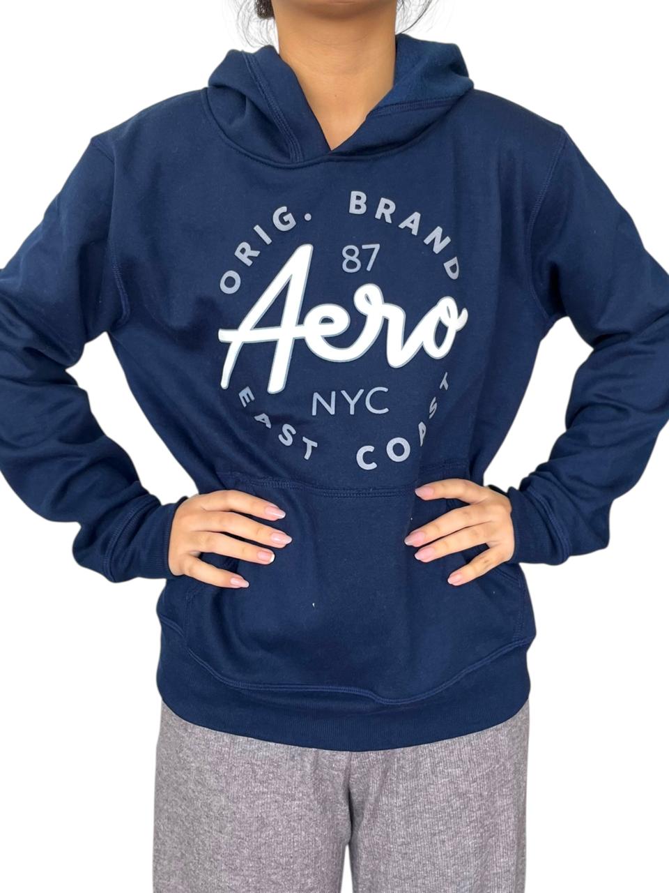Polera estampado en el pecho con capucha, canguro y pitas