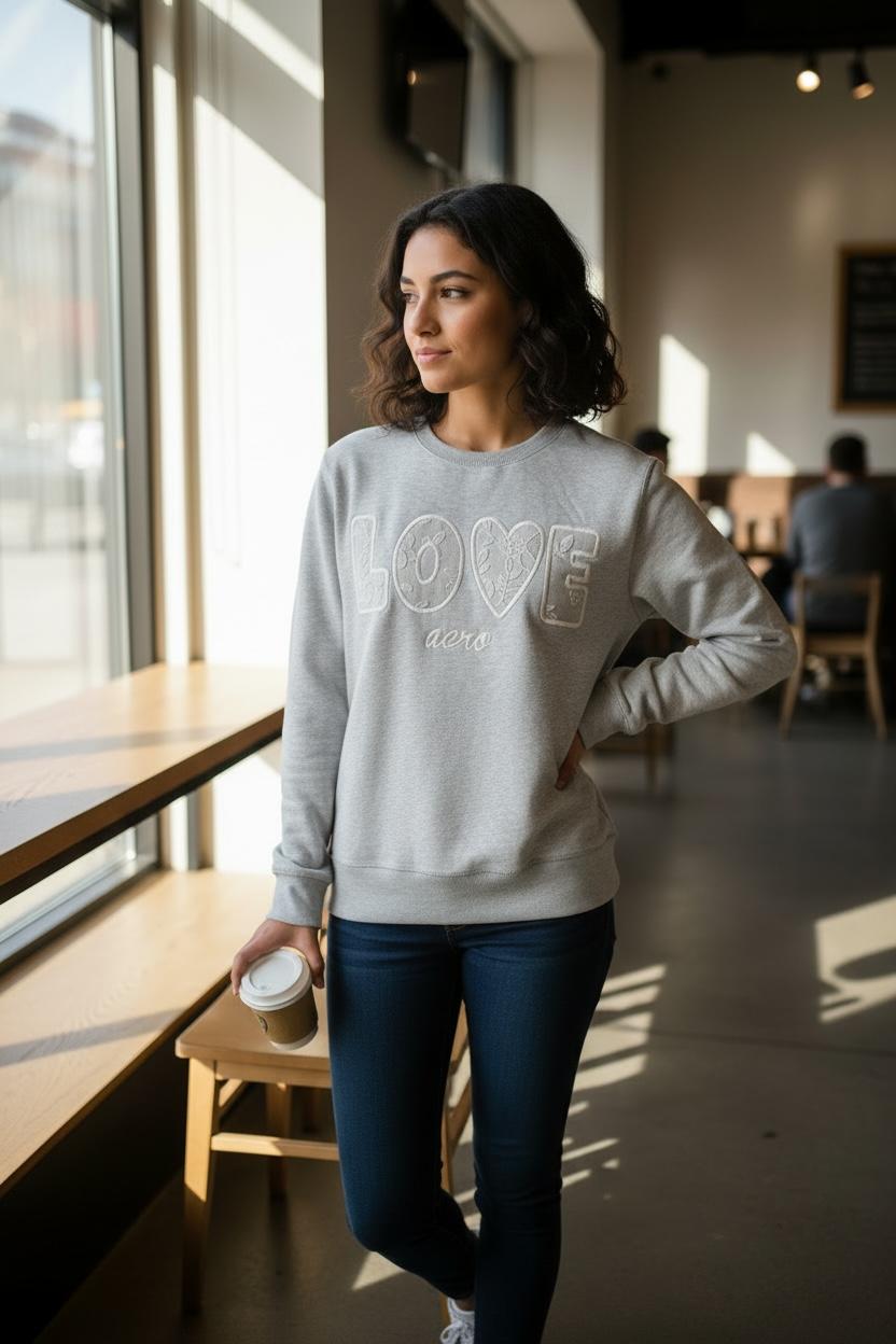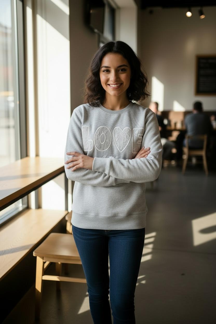 Polera cerrada con bordado en el pecho