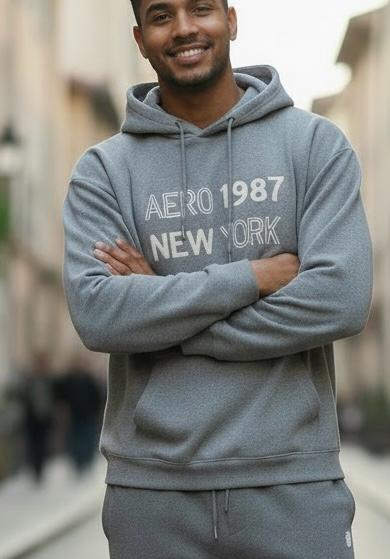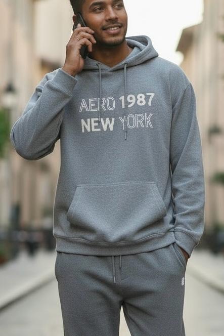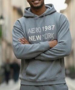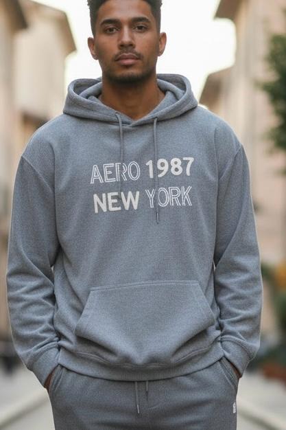 Polera cerrada wafler con capucha y bordado