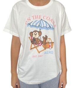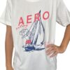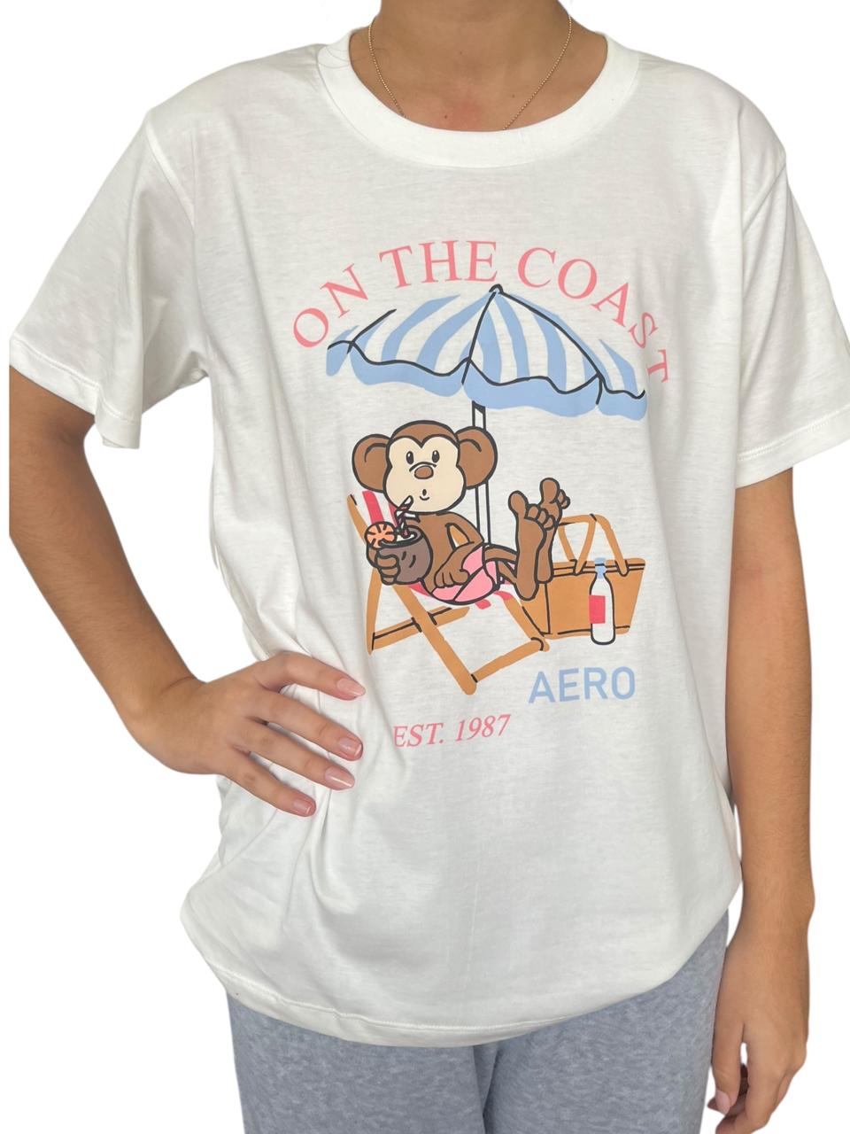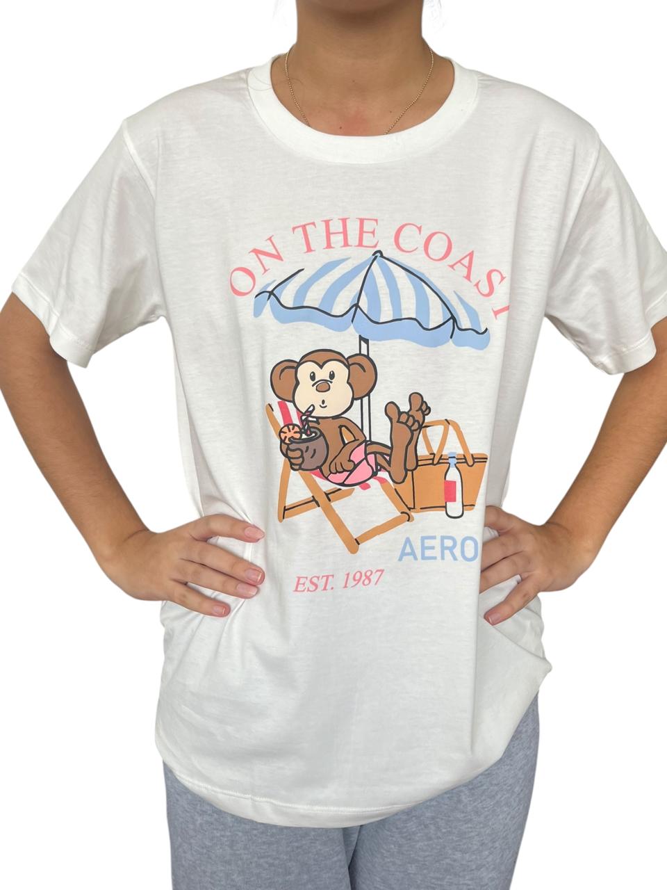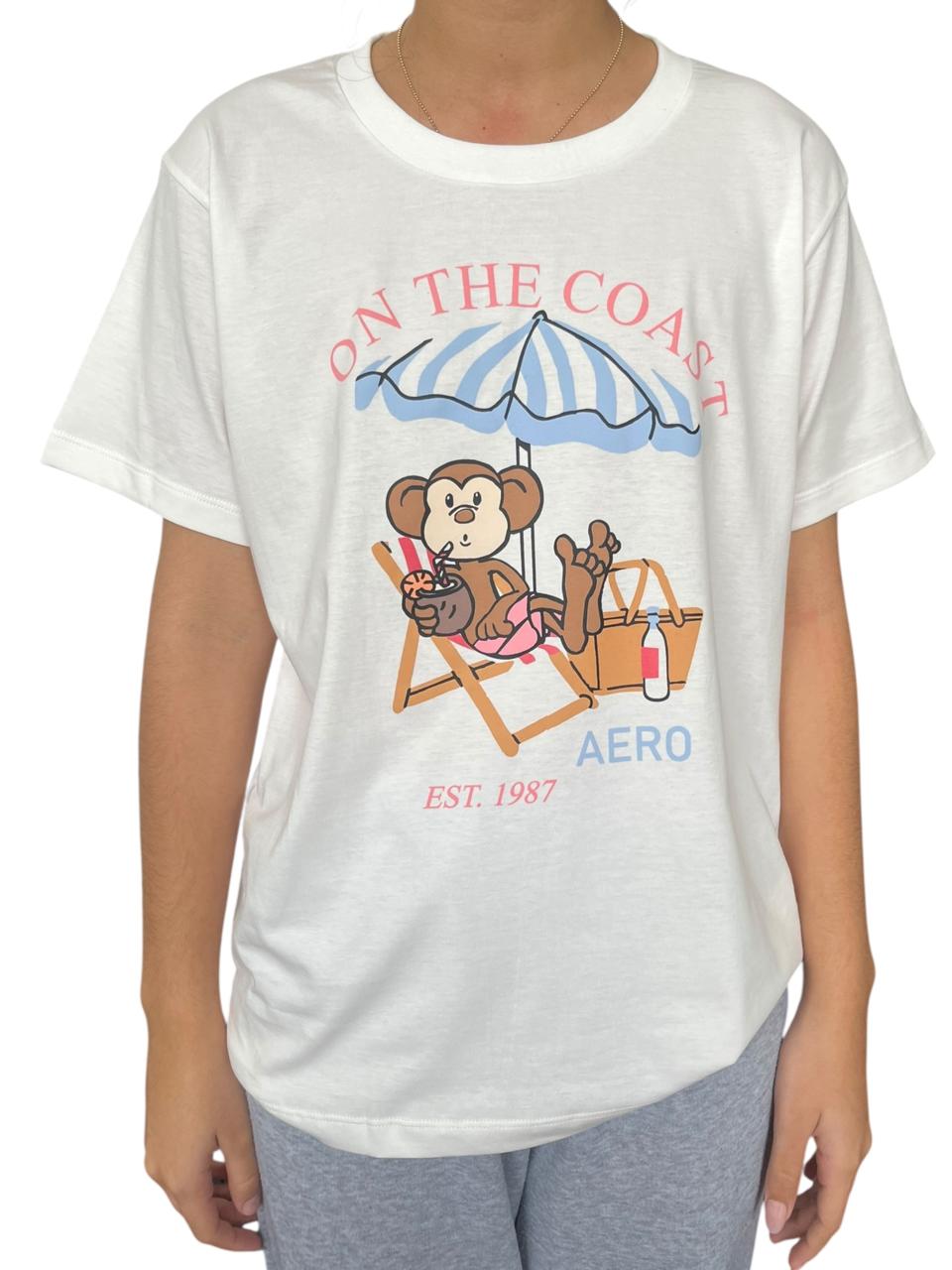 Polo blanco, cuello redondo, estampado en pecho