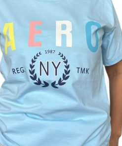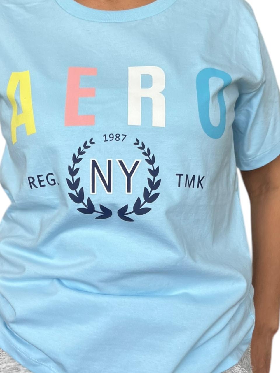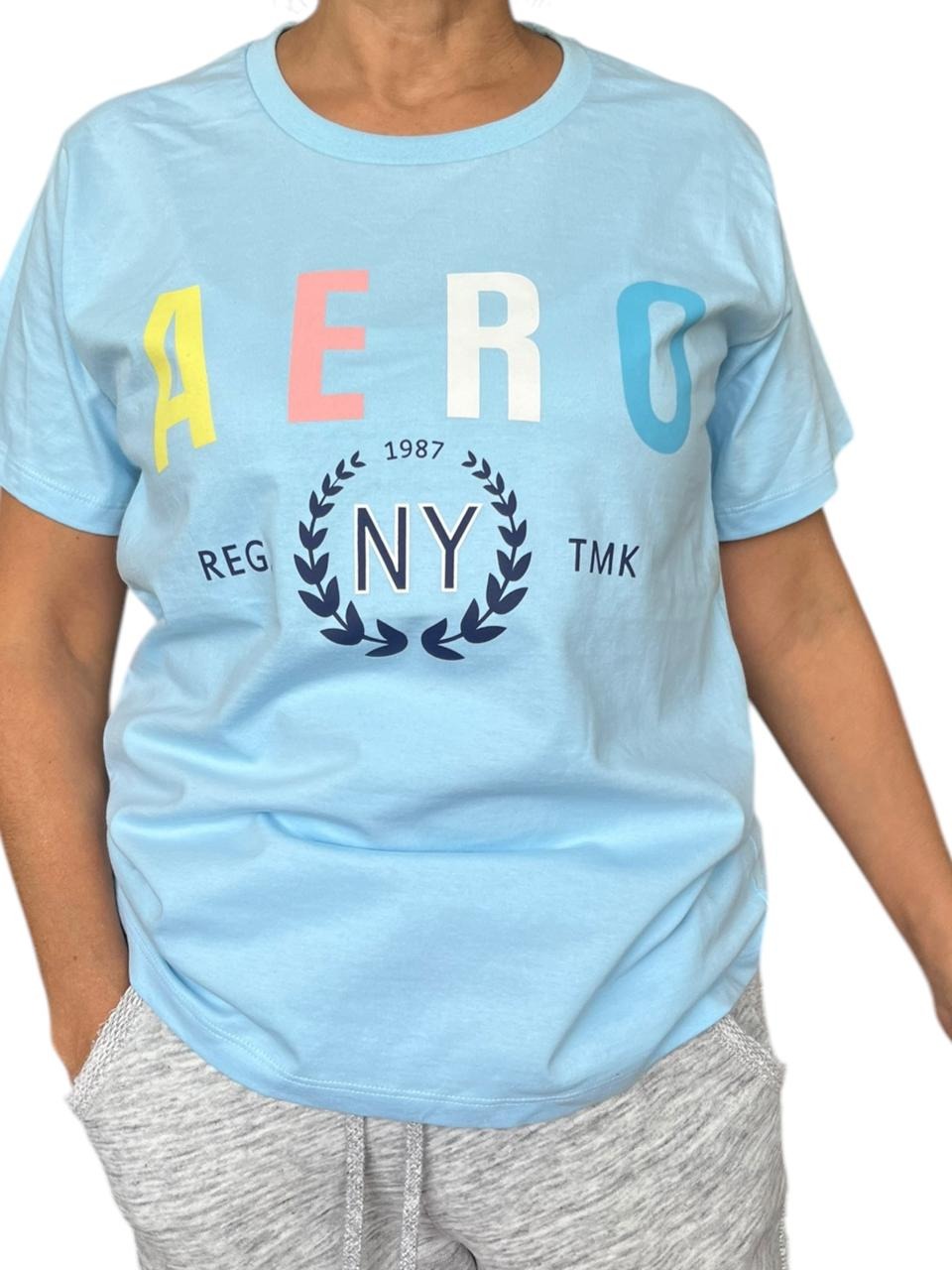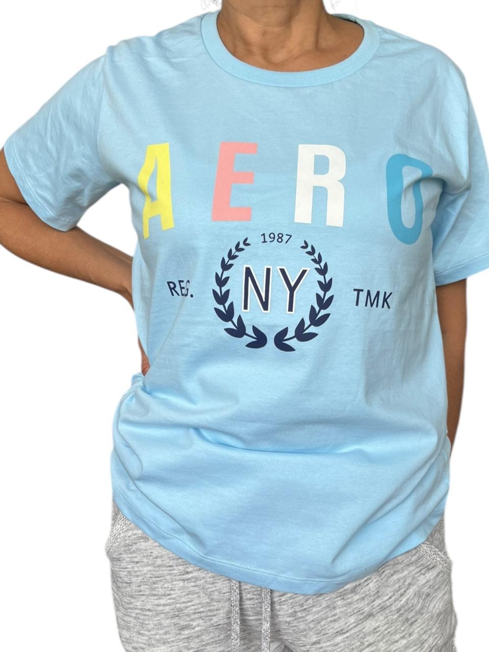 Polo celeste estampado en pecho