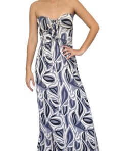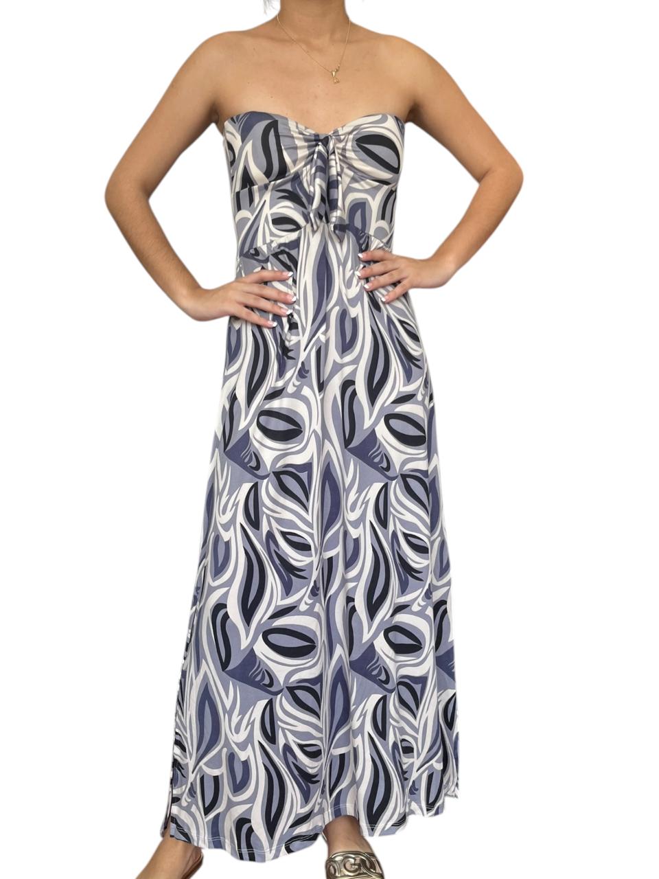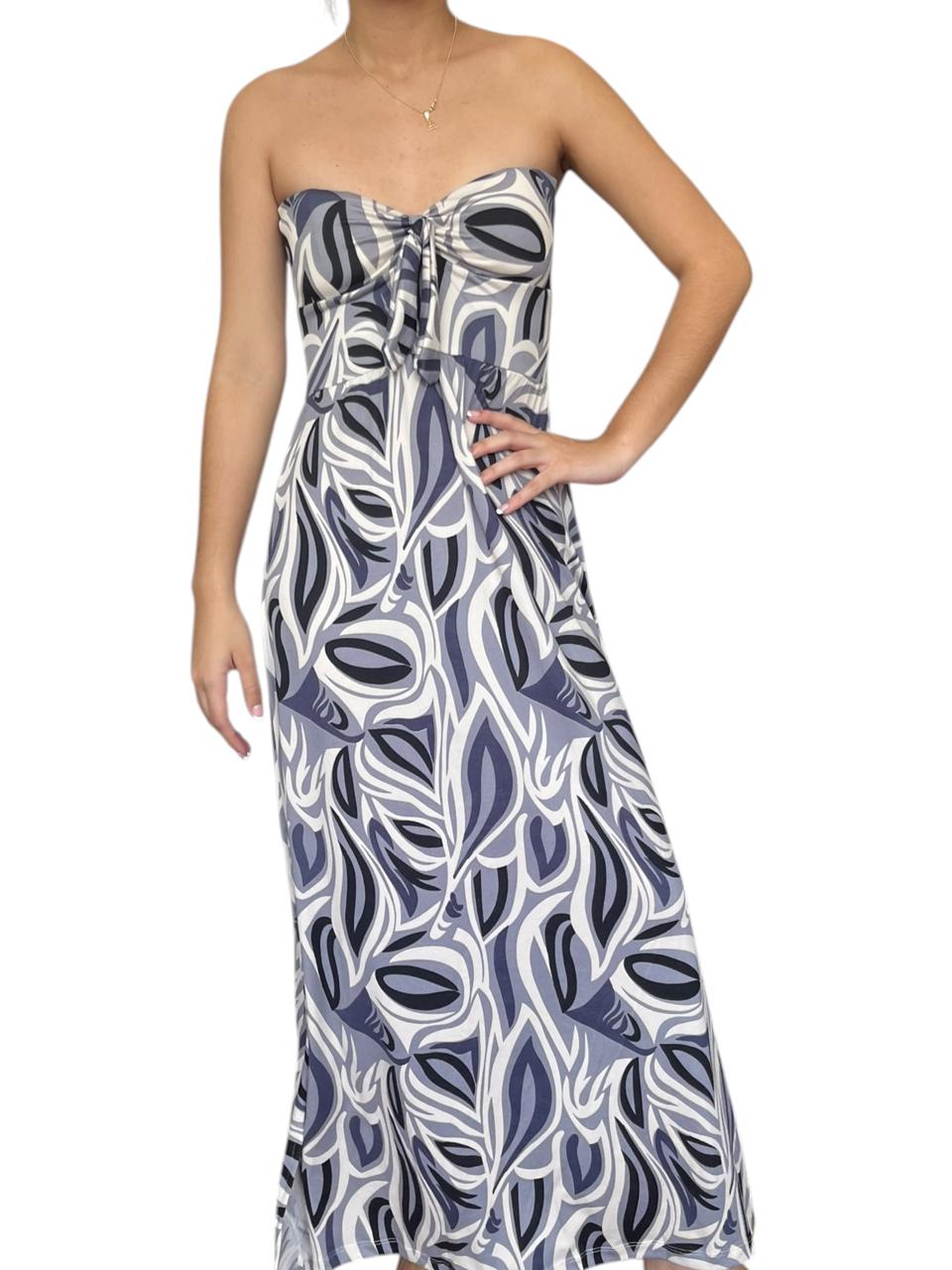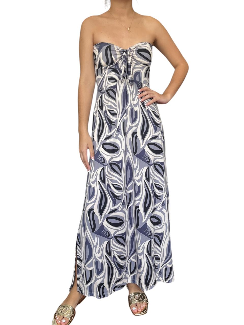 Vestido largo strapless, con abertura al costado